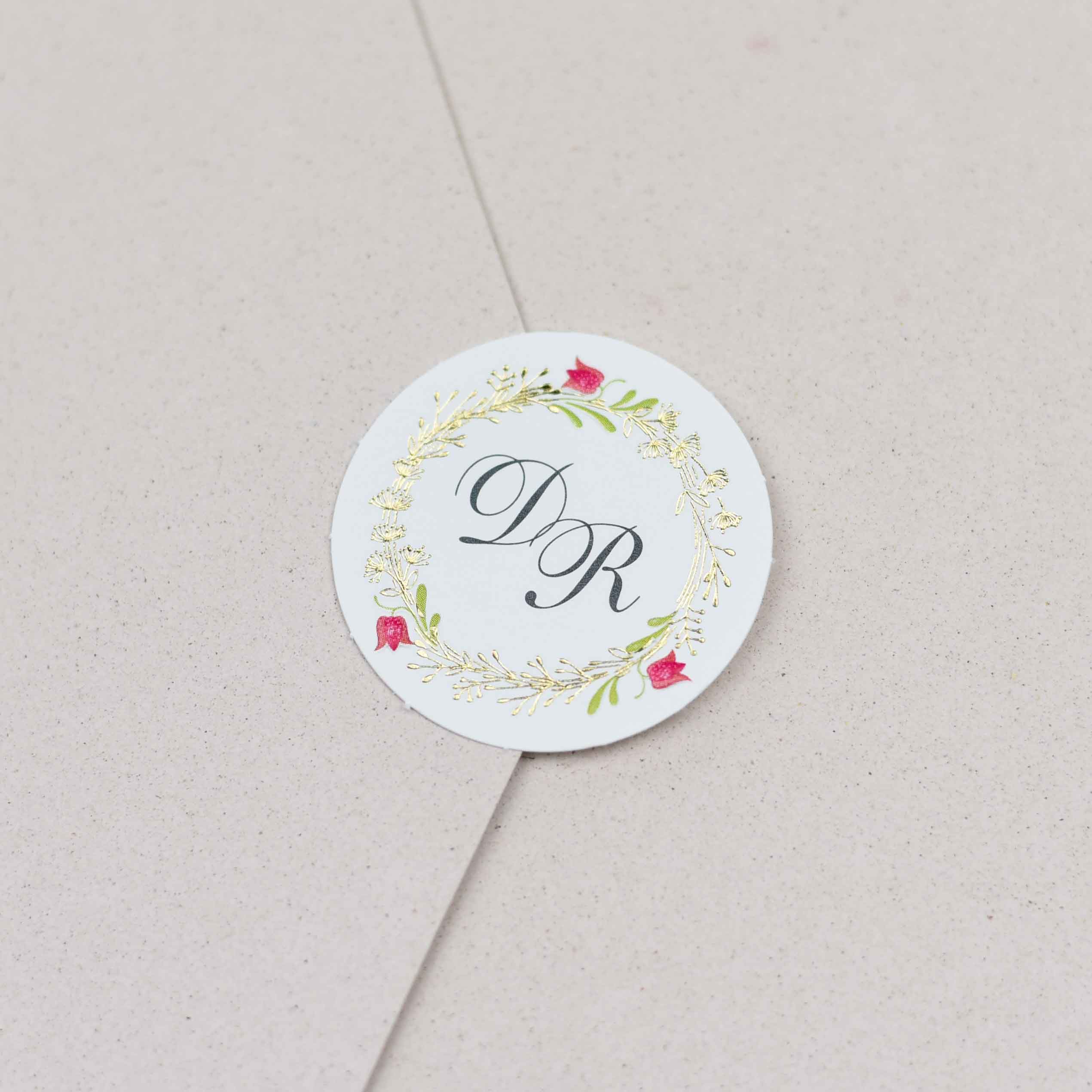 Eleganti ghirlande in oro a caldo, con fiorellini in stampa offset,