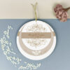 Soggetto originale in stile moderno e floreale realizzata pregiata carta bianca goffrata Natural Evolution White 200 gr. , impreziosito da un cordoncino colorato che unisce insieme la Partecipazione e l’invito al ristorante.