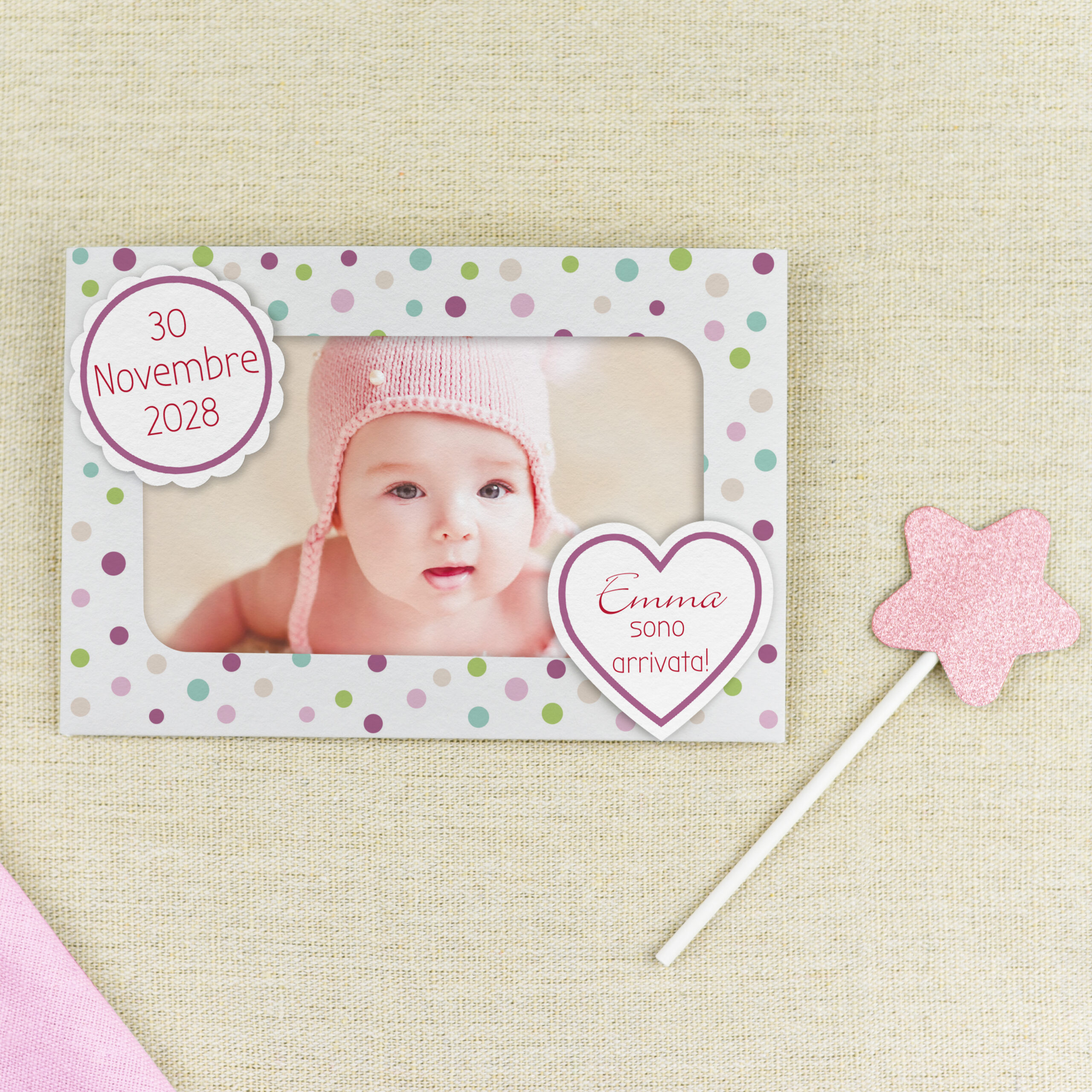 Questo portafoto con pois rosa è adatto per la Nascita e/o per il Battesimo del tuo bambino/a.